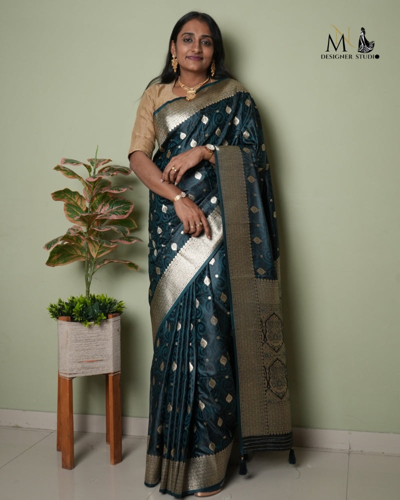 Gorgeous Pure Banarasi Satin Silk Saree With Floral Self And Zari Buti pattern | anbhiga Indian Traditional Partywear Saree with Blouse Sadi